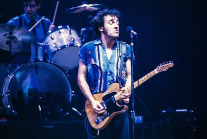Bruce Springsteen, con el batería Max Weinberg al fondo, actuando en Montreal (Canadá), en 1981. PONOPRESSE (Gamma-Rapho via Getty Images)