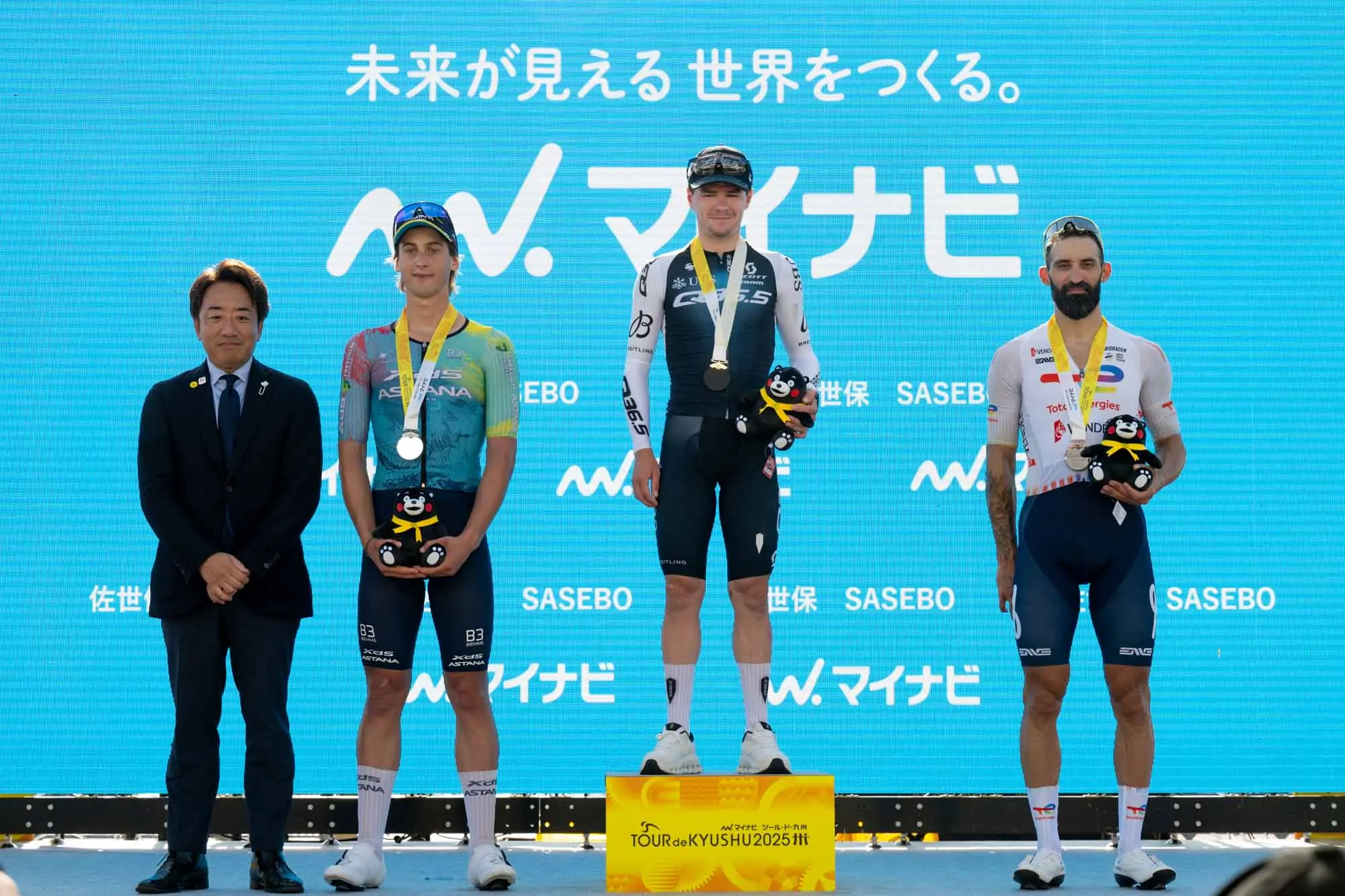Podio del critérium del Tour de Kyushu