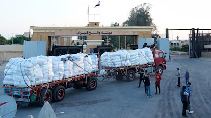 Un camión con ayuda humanitaria se dirige a la inspección por las autoridades militares de Israel, en Rafah (Egipto), este lunes.Mohammed Arafat (AP)