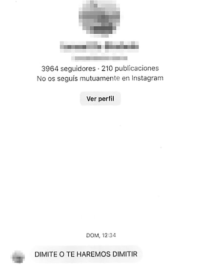 Mensaje remitido a la cuenta de Instagram de Nora Junco pidiendo su dimisión