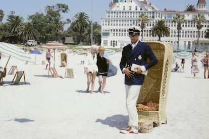 Si uno está sentado de espaldas al hotel del Coronado, observando el Pacífico, puede que ni siquiera recuerde que está en un hotel. Es más como si se tratara de un pequeño pueblo, casi mediterráneo, aunque en plena costa idílica de San Diego. Lo primero, al fondo, ommipresentes, esas vistas al mar. Después, una explanada de hierba verde, una piscina cargada de tumbonas, una pequeña hilera de restaurantes (la pizzería, la heladería, el japo de moda, la tienda de golosinas y caprichos, el pub). En las noches, un tipo con boina y grandes bigotes blancos canta versiones de Bowie, Cat Stevens y James Taylor; lleva en ese taburete desde 1994. Niños con conos chorreantes de chocolate, parejas engalanadas, amigas en shorts y sudadera, a la californiana. Pero si el visitante gira la cabeza, o si se ve reflejado en la foto del turista que ve la estampa desde el lado contrario, entenderá el especial encanto del lugar. Este no es un paseo marítimo más en San Diego. Es el mundo que rodea y del que se enorgullece este hotel de altos torreones rojos y ondeantes banderas que le hará pensar ¿de qué me suena…? Le suena de toda la vida.