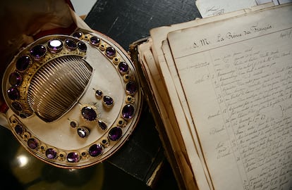Las joyas de la reina Maria Amelia, la última reina de Francia, han sido objeto de numerosas subastas. Aquí podemos ver un juego de amatistas que perteneció al joyero Mellerio. FRANCK FIFE (AFP via Getty Images)