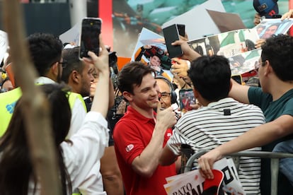 Patricio O’Ward (Monterrey, 26 años) derrocha carisma a cada paso que da. Está en el lobby de un hotel antes de convivir con cientos de seguidores que le han esperado para verle. Muchas de sus aficionadas tienen sobre su cabeza un broche de un pato amarillo de peluche, camisetas color papaya y el móvil en mano para intentar capturar una fotografía del piloto. Hay quien está lejos del escenario montado en una plaza pública, tan lejos que tiene que mirar hacia arriba para intentar captar algo con el zoom del celular mientras sostiene con la otra mano, con cierta fe, un plumón por si hay oportunidad para un autógrafo. O’Ward, como cantante de alguna banda de K-pop, tiene todo un ejército de aficionados, tiene el empuje comercial y el talento, pero no un asiento de un Fórmula 1.