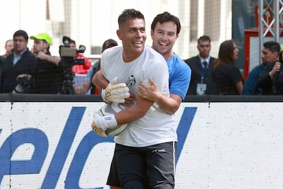 Checo Pérez convive con el exportero Oswaldo Sánchez, es jueves.Alex Cruz Alex Cruz (EFE)