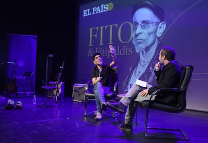 “Siempre me he sentido extraño, tan triste como afortunado”, aulló Cabrales durante la interpretación de Los cuervos se lo pasan bien, primer sencillo del disco. Tras lanzar la púa de su guitarra al público, el músico se sentó junto con el periodista de EL PAÍS Fernando Navarro para diseccionar las diez canciones que dan forma a este nuevo trabajo. Defiende que, aunque siempre tuvo referentes como Leño o Rosendo, nunca le interesó ser la copia de nadie. “A través de las canciones me explico yo, tu obra tiene que ser tuya, te la tienes que inventar”, explicó. Y añadió: “Siempre hablo de mí, porque es lo que me ofrece una recompensa, más allá de los discos, las entradas y los conciertos”. La realidad es que Fito y Fitipaldis han agotado ya las entradas de muchas de las paradas de Aullidos Tour, la gira que comenzará el próximo 21 de noviembre en Santander con la que la banda llevará su característico sonido Fitipaldi a los grandes recintos de la geografía española.