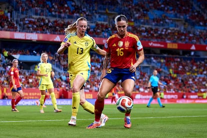 El momento culmen del dominio abrumador que España desplegó anoche contra Suecia en La Rosaleda en la ida de las semifinales de la Nations League se produjo en el minuto 35. Mariona encimó a Lundkvist en la salida de balón y forzó la pérdida de la lateral derecha del San Diego Wave. La Roja recuperó la posesión casi al borde del área de su rival y 22 segundos más tarde lo dejó en la lona al anotar el tercer gol. Seis jugadoras —la propia Mariona, Pina, Alexia, Aitana, Ona y Vicky López— del equipo dirigido por Sonia Bermúdez, que se estrenó en Málaga como nueva seleccionadora tras la etapa de Montse Tomé, trenzaron 13 pases a máxima velocidad en ese lapso de tiempo tan corto para llevar la pelota del carril izquierdo al derecho. Pina estrelló en el larguero el centro de la joven y talentosa Vicky, pero Putellas envió el rechace a la red. La secuencia fue tan preciosista como efectiva para encumbrar el juego y la superioridad de España sobre el tercer clasificado del ranking FIFA.