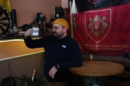 Debajo de donde despacha sus productos Oleg, la curva de la carretera acoge entre otros locales el colmado y cafetería que regenta Kiril, de 31 años, que presenta además un improvisado museo de la guerra con algunas piezas incluso de las dos guerras mundiales. “No tengo esperanzas de que vayamos a liberar la ciudad de Donetsk. No lo necesitamos. Mucha gente ha sido asesinada ¿Para qué? Para mí, como ciudadano de la región de Donetsk ocupado desde 2014, no tengo manera de aceptar a esa gente. Lo que quiero es salvar el territorio que mantiene Ucrania en estos momentos y salvar cuantas más vidas mejor”. En cuanto a la posibilidad de cerrar la contienda entregando Myrne y el resto del Donetsk que controla Kiev, Kiril es concluyente. “No puedo imaginar que se ceda esto a Rusia sin combatir. Todos los militares que conozco nunca lo aceptarían. Habría un gran odio contra [el presidente Volodímir] Zelenski y el Gobierno. Nadie va a entregar gratis este territorio a los rusos”, zanja.