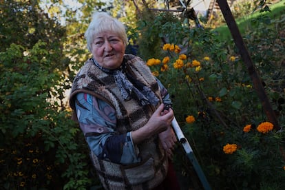 Halina, de 78 años, en el jardín de su casa en el pueblo de Myrne (Sloviansk). Tiene en el ejército a su hijo, su nieto y su yerno.Luis de Vega