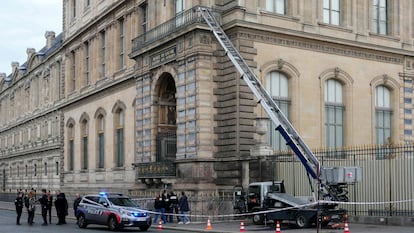 El camión con el montacargas que los ladrones usaron para entrar en el Louvre a plena luz del día.DPA vía Europa Press (DPA vía Europa Press)