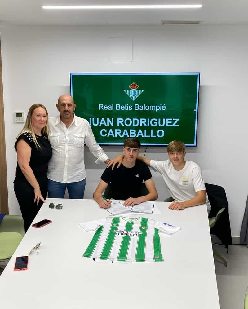 El pequeño de la saga de Alcalá de Guadaíra, a sus 17 años, consolida el relevo familiar, después de aterrizar el curso pasado en la cantera heliopolitana y marcar 10 goles en 24 encuentros con el juvenil B de Liga Nacional. Estará muy pendiente el míster del vigente ganador de la Copa de Campeones del artillero, de 1,93 y una destacada trayectoria en el fútbol provincial. Más referencial arriba que su hermano mayor, extremo desequilibrante del Como 1907 y flamante nuevo internacional español absoluto, Juan Rodríguez destacó en los infantiles del Atlético Oromana de su ciudad natal, marchándose luego al Dos Hermanas CF y, ya como cadete, al San Roque, desde donde fue captado por los técnicos béticos. En su debut con el juvenil A, ha dejado su sello.