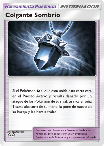 La siguiente táctica es usar el Colgante Sombrío para que cada vez que tus Pokémon reciban daño, tu oponente pierda una de sus cartas en su baraja. No está descartada, pero contribuirá a ralentizar el desarrollo de tu oponente.