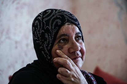 Afaf Abu Alia muestras las heridas causadas por el ataque, en su casa del poblado cisjordano de Al Mughayer, el pasado viernes.Saeed Qaq