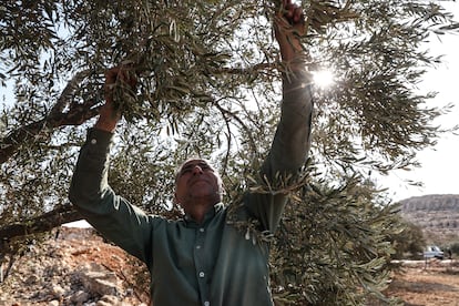 Un palestino recoge aceitunas, en Abu Falah (Cisjordania), el pasado viernes.Saeed Qaq