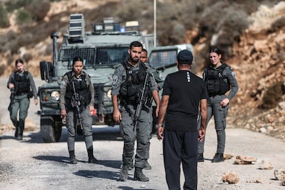 Apenas 20 metros separan a los soldados israelíes de los agricultores palestinos en Abu Falah, un poblado cisjordano cerca de Ramala. Los primeros llevan desde primera hora apostados en la carretera que lleva a un asentamiento judío cercano. Los segundos varean o recogen a mano aceitunas, al inicio de una temporada de recolecta de la que dependen hasta 100.000 familias de Cisjordania, según la ONU. Para los palestinos, que ven el apego a la tierra como parte de su identidad, son días de celebración, pero también uno de los momentos más peligrosos del año. Empoderados por el clima de impunidad política y por la pasividad (en el mejor de los casos) o connivencia de ejército y policía, los colonos israelíes más radicales marcan terreno a diario, bajando por sorpresa desde los asentamientos a agredirlos, acosarlos, incendiar sus cosechas y vehículos, robarles sacos de aceitunas o dañar los olivos. No es una novedad, pero ―como casi todo en Cisjordania en los dos últimos años― la violencia ha alcanzado cuotas inéditas esta temporada de recogida de la aceituna que comenzó el pasado día 9.