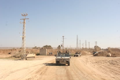 Todoterrenos militares avanzan por un corredor en el norte de Gaza, en el marco de la visita de los periodistas. Imagen sometida a las normas de la censura militar israelí.Antonio Pita