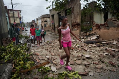 Vecinos de Santiago (Cuba) caminan entre los estragos del huracán.Alexandre Meneghini (REUTERS)