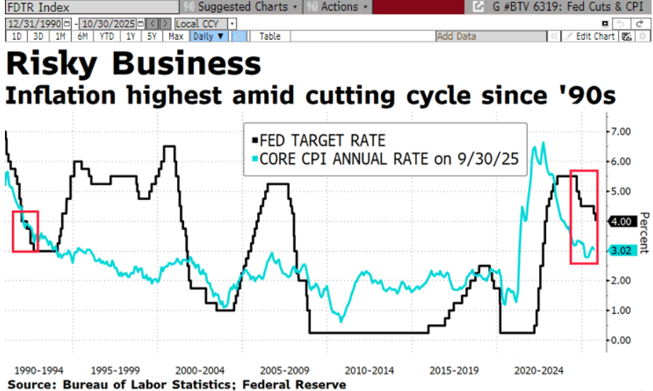 “Everything Rally” respaldado en unos beneficios empresariales batiendo al mayor ritmo en 4 años y una FED bajando tipos. Powell no considera estar en burbuja en la IA, siendo una inversión real en infraestructura, en contraste con el auge especulativo de las puntocom.