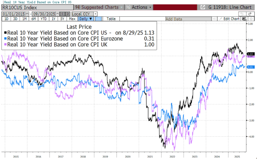 En este escenario el mercado de bonos pausa la euforia, hay margen de normalización monetaria con el nivel actual de precios, pero no será tan rápido como los mercados quieren descontar. Tipos reales en Reino Unido y Estados Unidos > 100 puntos básicos (core), margen para seguir normalizando política monetaria. En Europa las oportunidades se han moderado tras 8 recortes de tipos del 4,5% al 2%, tipo real en 30 puntos básicos. Riesgos limitados en un escenario de precios controlados y débil crecimiento.