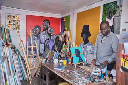 Clinton Aristo, en su estudio Rafiki Art Space, que forma parte del Distrito de Arte de Kibera, el pasado junio.Diego Menjíbar