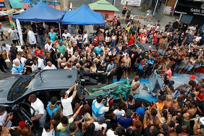Personas observan a las víctimas del operativo en una calle en Río de Janeiro, el 29 de octubre.André Coelho (EFE)