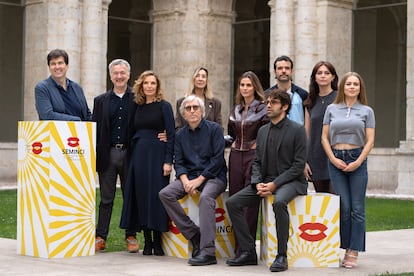 David Trueba, con el elenco de ‘Siempre es invierno’, en la Seminci de Valladolid.Emilio Fraile