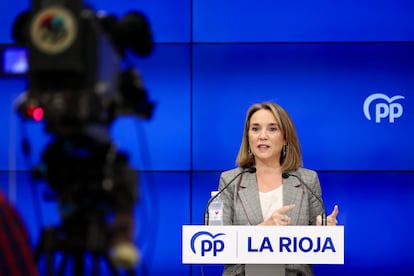 La vicesecretaria de Regeneración Institucional del PP, Cuca Gamarra, durante unas declaraciones en La Rioja.Raquel Manzanares (EFE)