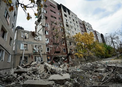 Edificios de apartamentos dañados por un ataque militar ruso, en la ciudad de Kostiantynivka, en primera línea de la región de Donetsk, este sábado.Yan Dobronosov (REUTERS)