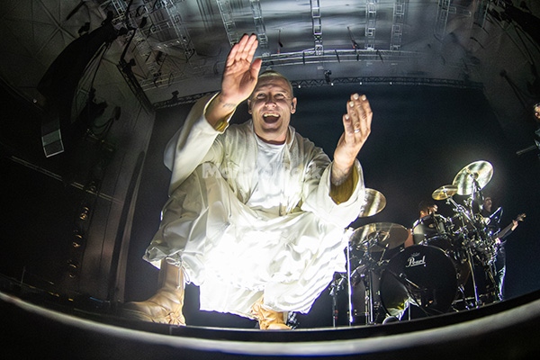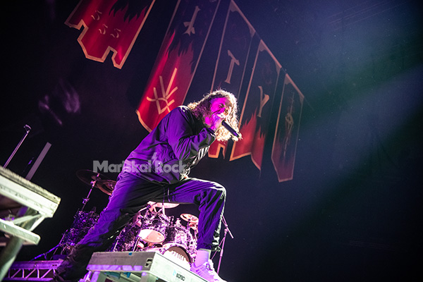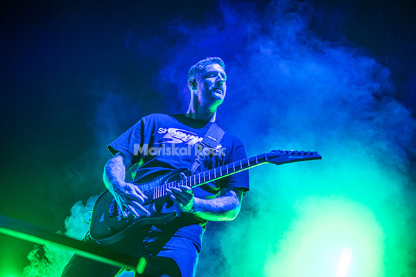 Con “Glitch”, el escenario estalla: fuego, pirotecnia, luces que ciegan y riffs que cortan el aire. Cada canción es un acto de guerra escenificado con precisión cinematográfica. En “Vice Grip” y “Sacred”, el público se convierte en un coro de miles; los brazos en alto son llamaradas humanas, una ola de fuego vivo. “Boneyards” revive el metalcore más primitivo y la pista se transforma en un torbellino de cuerpos, sudor y nostalgia.