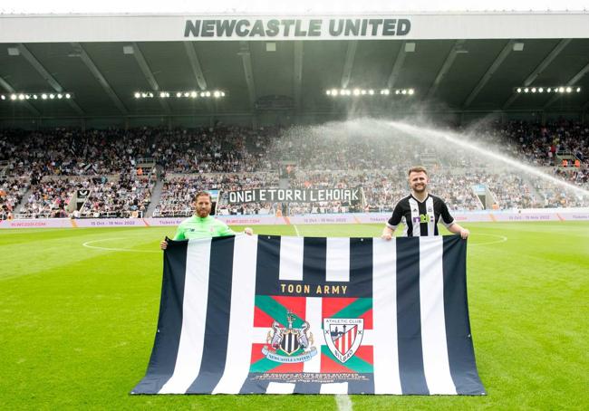 Desde entonces, las relaciones entre ambas aficiones han sido magníficas. Prueba de ello esa bandera con la ikurriña. Aunque, eso sí, no se habían vuelto a encontrar en un partido oficial. Sí han disputado un par de amistosos entre ellos. El primero, en agosto de 2001, con victoria para los visitantes gracias a una diana de Julen Guerrero. El segundo, en julio de 2022, con triunfo para los ingleses. Entonces, Muniain, acompañado del capitán del Newcastle, mostró esa bandera. De fondo, se podía leer: «Ongi etorri lehoiak».