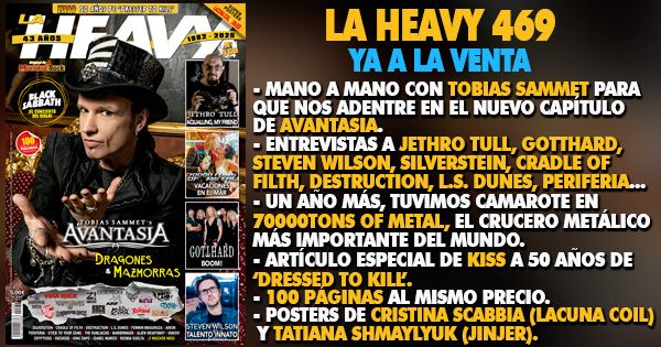 Avantasia, con Tobias Sammet a la cabeza, se hizo con la portada del número 469 de La Heavy, Destacan también entre las 100 páginas de este número Jethro Tull, Gotthard, Steven Wilson y todo lo que sucedió en 70000TONS OF METAL. Visita nuestra tienda online para no perderte nada.