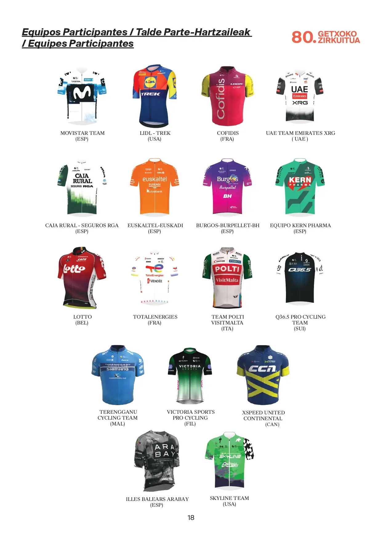 En cuanto a participación, se espera un elenco de equipos de primer nivel. Movistar, con el vigente campeón Jon Barrenetxea, parte como uno de los favoritos. Junto a él competirán equipos del UCI WorldTour como UAE, Lidl y Cofidis. También estarán presentes escuadras ProTeam como Lotto, TotalEnergies, Q36.5, Kern Pharma, Euskaltel, Caja Rural, Burgos, Polti además de conjuntos continentales como Illes Balears.