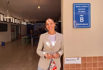 La maestra María José Navarro, directora del colegio La Paz de El Aaiún, en la biblioteca del centro en marzo.J. C. S.