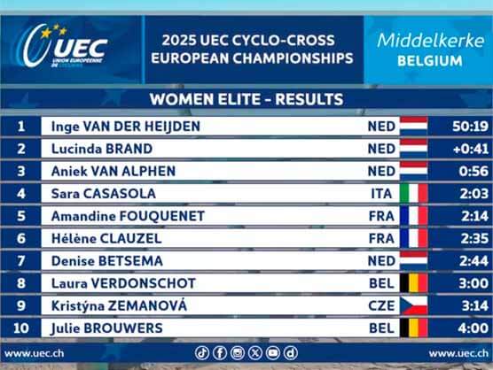 1. Clasificaciones completas de la prueba élite femenina del Campeonato de Europa de Ciclocross 2025  EsCiclismo.com