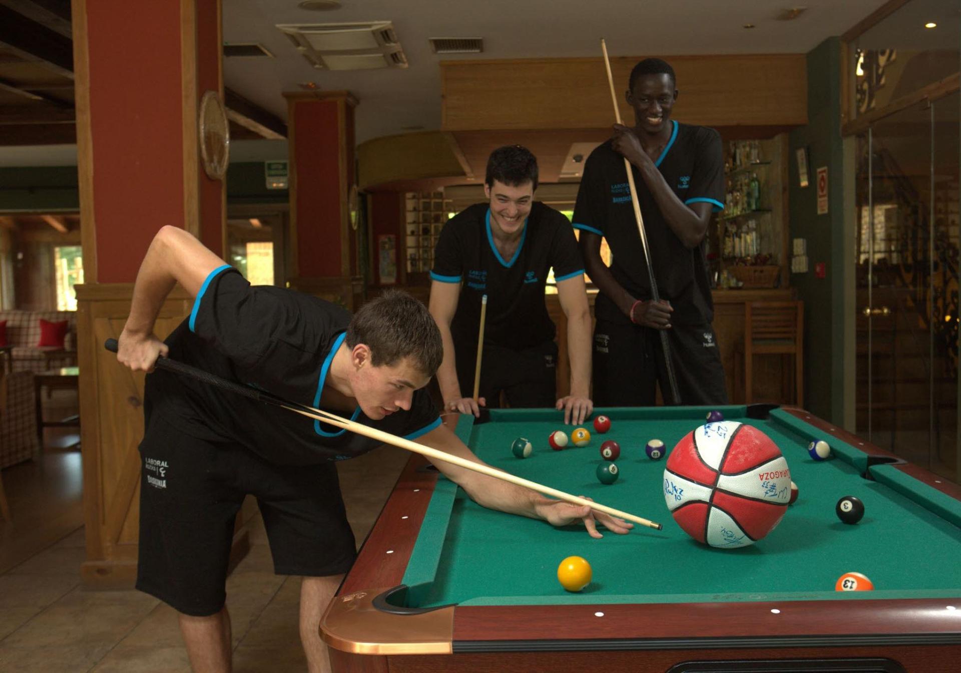 El brsasileño juega al billar con Van Oostrum y Diop en una concentración baskonista en 2013.