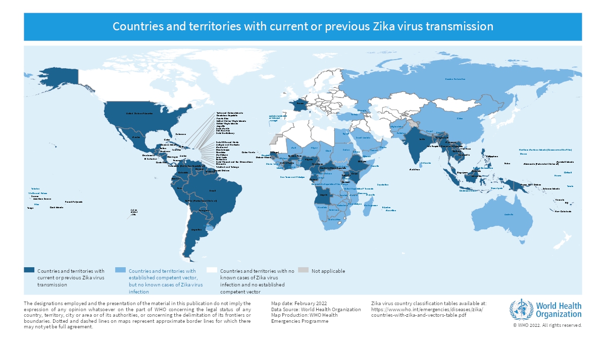 - WHO. Zika epidemiology update—February 2022. Feb 8, 2022. https://www.who.int/publications/m/item/zika-epidemiologyupdate—february-2022 (accessed Aug 1, 2025).