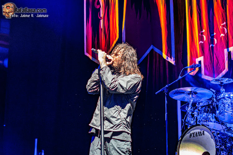 Indudablemente, fue uno de los momentos de la noche. Tras permanecer el escenario completamente a oscuras durante unos segundos, unos monjes aparecieron rodeando el pie de micro central, creando una ambientación ritualista, que hizo que durante los compases iniciales de “Cemetery Bloom”, nadie apartara la mirada del escenario, y más aún cuando la banda arrancó el tema precedido de unas explosiones para poner a todo el auditorio a botar como si no hubiera mañana. Una nueva mirada sobre “Reverence” serviría como excusa para recuperar la implacable “The Void”, que arrancaba con una nueva ración de fuegos artificiales para acabar convirtiéndose en una de las más coreadas de toda la velada.