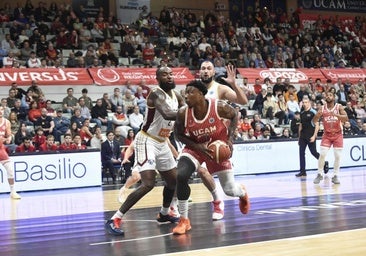 Momentos que la poca historia que tenía la película a estas alturas permitía el detalle y la significación, una que empezó a decantarse en favor del UCAM a partir de una de sus grandes fortalezas, el ataque del rebote ofensivo, clave de un parcial de 6-0 al final del primer cuarto, en el que Hicks metía su primer triple en el Palacio, para ponerse por primera vez por delante (21-16). Con un Dani García reconciliado con el baloncesto, un Diagne siempre en comunión con la grada y un Raieste ahora el nuevo ojito derecho del respetable, un UCAM rebosante de energía comenzaba a volar (28-20, minuto 13). Diferencia que, tonteando con la decena, se mantuvo hasta el descanso con grandes destellos de DeJulius (43-33).