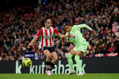 Vicky pasa el balón ante Garazi Facila el 18 de enero en San Mamés en el partido de la temporada pasada entre el Athletic y el Barça.Ion Alcoba Beitia (Getty Images)