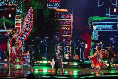 La presencia de México fue poderosísima en la gala. Los jóvenes DannyLux, Kakalo e Iván Cornejo mostraron el potencial del regional mexicano. Mucho más clásico y cargado de fuerza, con mariachi y hasta charrería con lazo de jaripeo, actuó Pepe Aguilar, cuya hija, Ángela Aguilar, le aclamaba y cantaba entre el público, mientras bailaban y taconeaban las bailarinas de jarabe tapatío y baile de Jalisco, volando con sus brillantes faldas de colores. También estuvieron presentes dos de las bandas mexicanas más poderosas del panorama mexicano, actuando juntas: Fuerza Regida (al principio, todos ellos con la cara tapada por un velo negro) y Grupo Frontera, que cantaron su Me Jalo a medias, y también Marlboro Rojo, para lo que se bajaron a la primera fila, cantando entre los familiares de Raphael y Bad Bunny. Carín León y Kacey Musgraves hicieron una mezcla “Texas meet [se encuentra con] Hermosillo”, como dijo Maluma, con su Lost in translation.