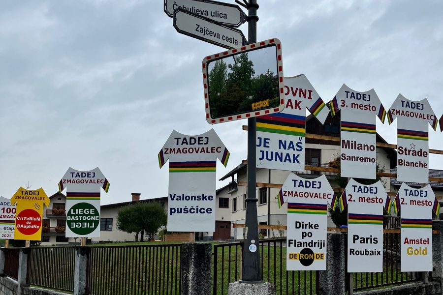 En el centro de Ljubljana no hay muchas señales de que esta sea la tierra de “Tadej”, como sí sucede en su pueblo, Komenda. Es curioso un rincón, no muy lejos de la casa de sus padres, donde se relatan con detalle todos sus resultados de 2025: victorias y podios en grandísimas carreras.