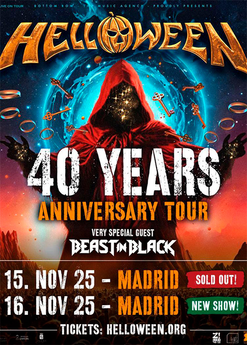 Como ya hemos dicho, los pioneros del power metal regresan a nuestro país el 15 y 16 de noviembre dentro de su gira mundial “40 Years Anniversary Tour”, que celebra cuatro décadas de historia sobre los escenarios. El recinto elegido: La Cubierta de Leganés, con producción completa y una puesta en escena a la altura de una banda irrepetible.