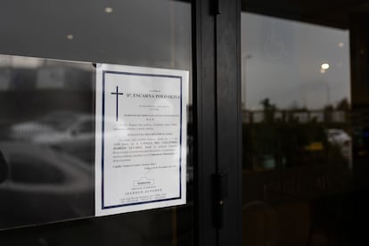 Esquela de Encarnita Polo, en una funeraria de Ávila.Emilio Fraile