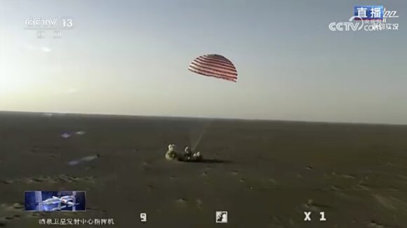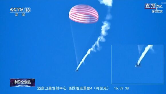 La cápsula Shenzhou 21 libera las reservas de hidrazina durante el descenso (CCTV).