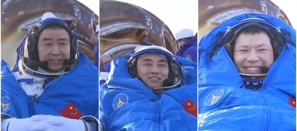 La tripulación de la Shenzhou 20, sana y salva en tierra: Chen Dong, Chen Zhongrui y Wang Jie (CMS).
