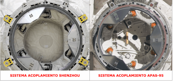 Sistema de acoplamiento de la Shenzhou comparado con el APAS-95 de la Mir y el shuttle.