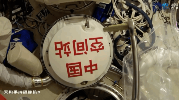 La cubierta que pone «Estación Espacial China» en la escotilla frontal del Tianhe también es un protector MMOD añadido (CMS).