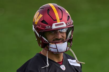 El quarterback de los Commanders Marcus Mariota, en un entrenamiento en Madrid.Bernat Armangue (AP)