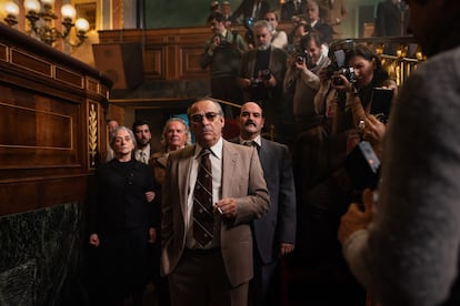 Gutiérrez Mellado —a quien interpreta Manolo Solo— pasó de alentar el golpe del 36 como militar a intentar democratizar el ejército en la Transición. Carrillo entendió que el dilema de los comunistas entonces no se reducía a defender la bandera republicana o a no aceptar la monarquía, sino que estribaba entre acabar con la dictadura y consolidar la democracia. Para eso, resultaba necesario ceder símbolos que aún hoy varios de los suyos no le perdonan. Y Suárez… “Fue el mayor traidor de los tres”, dice Cercas en conversación con EL PAÍS, una mañana de lunes de noviembre, junto a Rodríguez, “porque facilitó todas las deslealtades posibles en todos los frentes por la democracia”.
