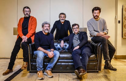 De izquierda a derecha, los responsables de ‘Anatomía de un instante’, el actor Manolo Solo, el director Alberto Rodríguez, el actor Eduard Fernández, el autor Javier Cercas y el actor Álvaro Morte.Álvaro García
