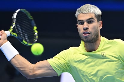 Y eso que es tímido, dice. A las diez de la noche, Carlos Alcaraz dedica unas palabras en italiano a los 13.000 espectadores de la velada, que se quedan con ganas de más. Gustoso, pero breve. Ni hora y media ha durado la segunda semifinal (6-2 y 6-4, tras 1h 22m) y la Copa de Maestros presenta el cartel deseado y, al mismo tiempo, esperado. Serán él y Jannik Sinner, cómo no. Lógica pura. Cualquier otro desenlace hubiera sido una sorpresa mayúscula. Uno y otro han despachado los duelos como quien se quita una mosca de encima y se reencontrarán este domingo (18.00, Movistar+) en el último episodio del año, antes de que se baje definitivamente la persiana en la Davis de Bolonia.